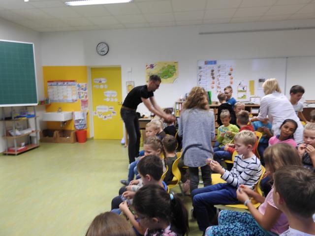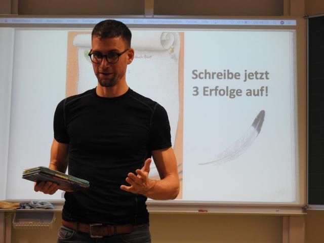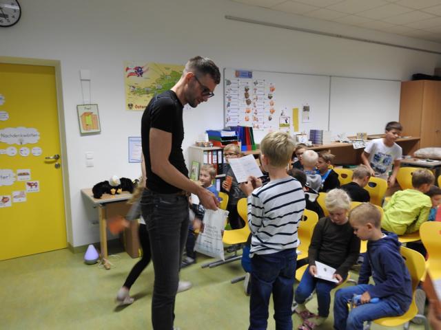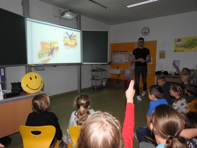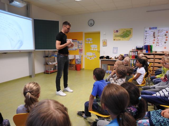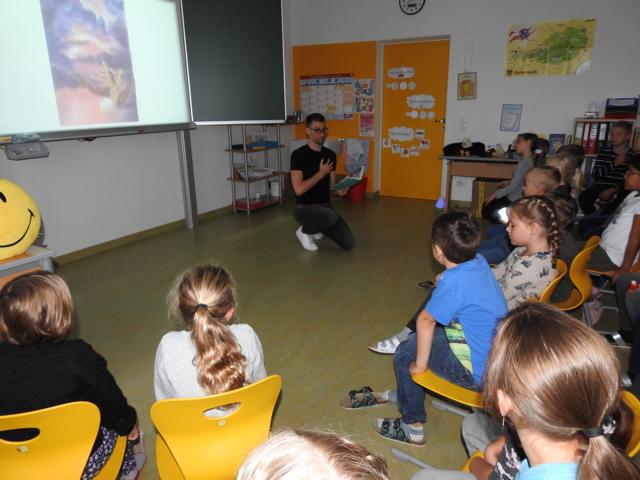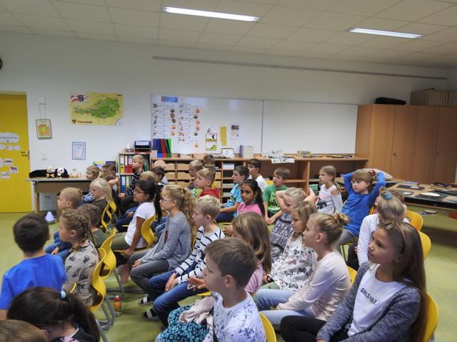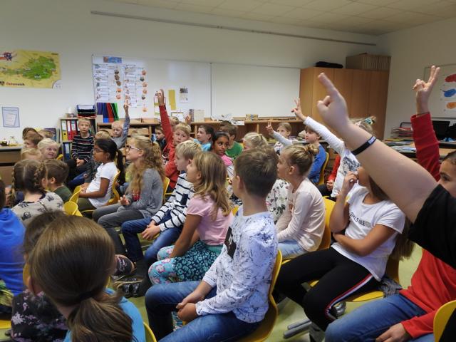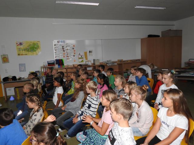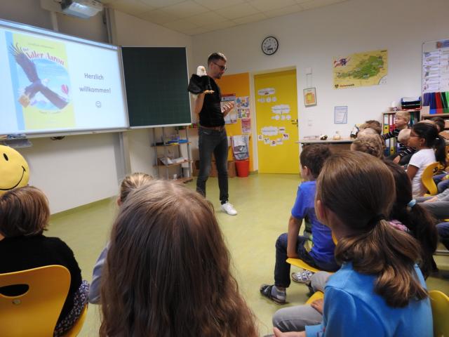 Am 3. Oktober kam Jonathan Mittermair zu uns an die Schule. Jonathan Mittermair ist bekannt für seinen großartigen Mental Lesungen. In seiner Mental Lesung versucht er mit seinem Buch „Der Adler Aron“ die Kinder zu animieren, ihre Talente zu finden und ihr Potenzial zu entfalten. Jonathan’s Lieblingsmotto,“Ob du denkst, du kannst es oder du kannst es nicht: Du wirst auf jeden Fall Recht behalten – Henry Ford „, zeigt, dass in uns MEHR steckt, als wir glauben.Die Kinder haben ihren Blick bei Jonathan vorne.Herr Mittermair startet seine Geschichte mit dem Weißkopfadler.Gebannt hörten die Kinder dem Erzähler zu.„In dieser geheimnisvollen Schachtel ist das Bild eines Superstars“Nun darf jedes Kind in eine kleine Schatulle schauen, darin befindet sich ein Star, der einfach großartig ist.Und? Kennst du den Superstar? Ja, du bist es !!!Der Adler Aron wurde immer größer, mutiger und stärker.Alles was ich brauche, steckt bereits in mir!Ich bin gut, so wie ich bin! Durch ein Zauberzuckerl wurden unsere Kräfte noch stärker.Plötzlich drohte dem Adler Aron Gefahr. Durch seinen Mut und seine Stärke konnte sich der Adler selbst retten.Jedes Kind bekommt ein Erfolgstagebuch, indem es jeden Tag reinschreiben kann, was es heute geschafft hat.Mal überlegen. Was habe ich heute schon geschafft.Brav schrieben alle Kinder in ihr Tagebuch.Danke für die tolle Geschichte.Wer noch nicht schreiben kann, darf natürlich auch seinen Erfolg zeichnen.Hab ich das gut gemacht?